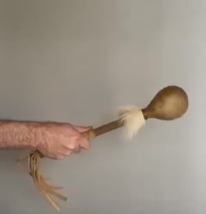 17” Natural Deer hide “teardrop” rattle w/ fringe