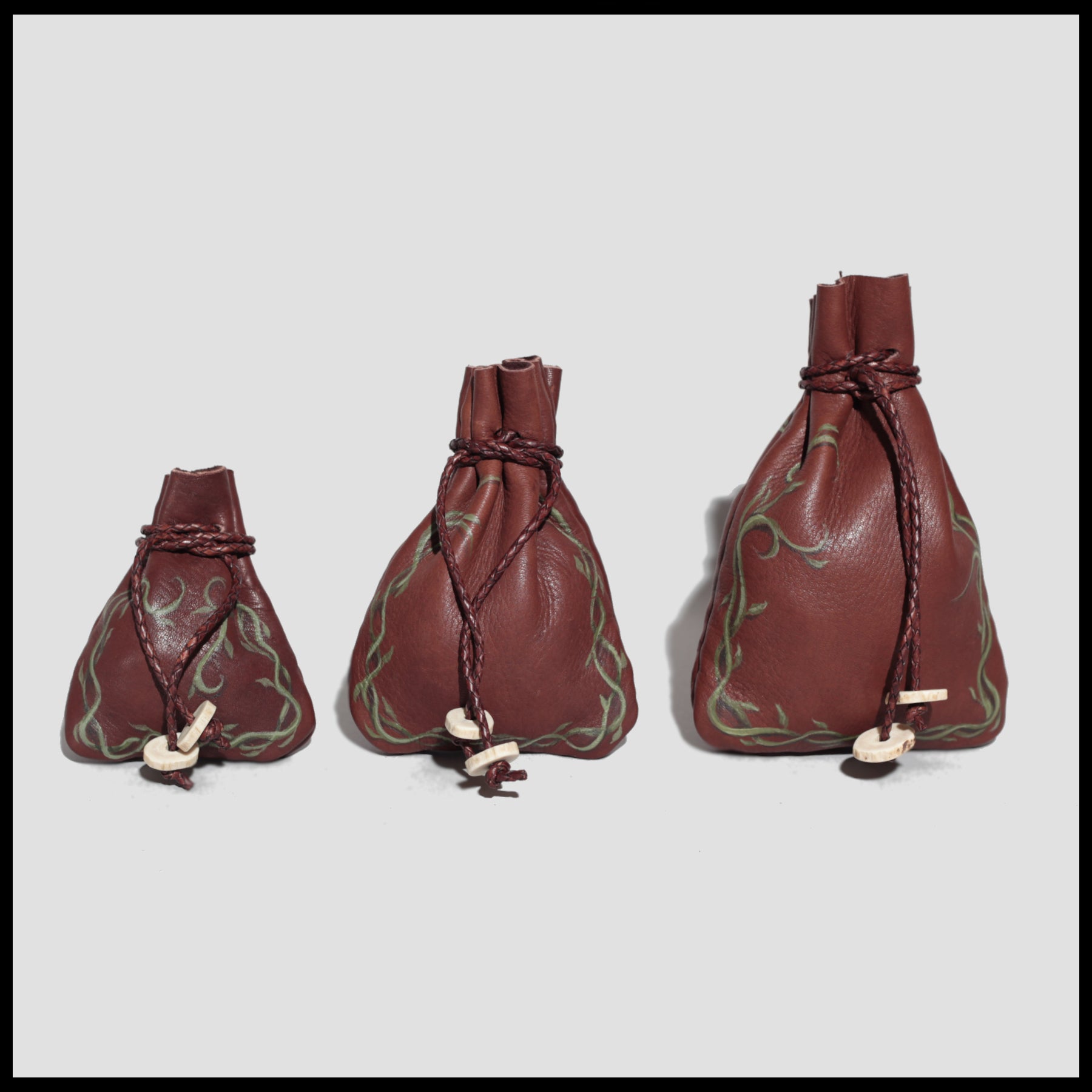 Brown "Vines" hand-painted Deer leather pouch w/ Deer antler toggles